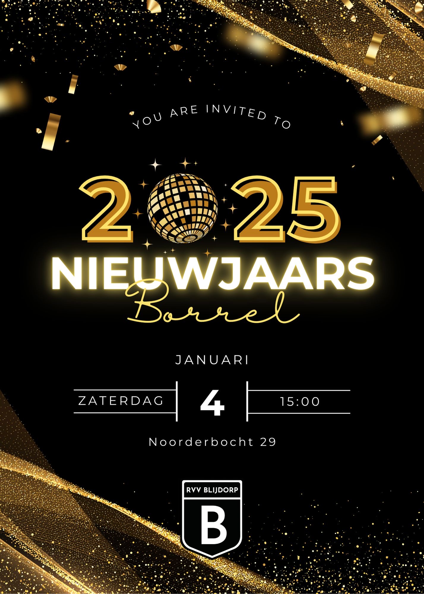 Traditiegetrouw houdt RVV Blijdorp ter opening van het nieuw jaar een nieuwjaarsreceptie. Deze vindt volgend jaar plaats op zaterdag 4 januari 2025 vanaf 15:00u.